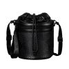 Dial up any ensemble to the height of luxury with this sleek drawstring bucket bag, masterfully crafted from classic black perforated leather by the illustrious Bottega Veneta. It's the leading accessory to complete your look with a hint of sophistication—snatch it up before it vanishes!