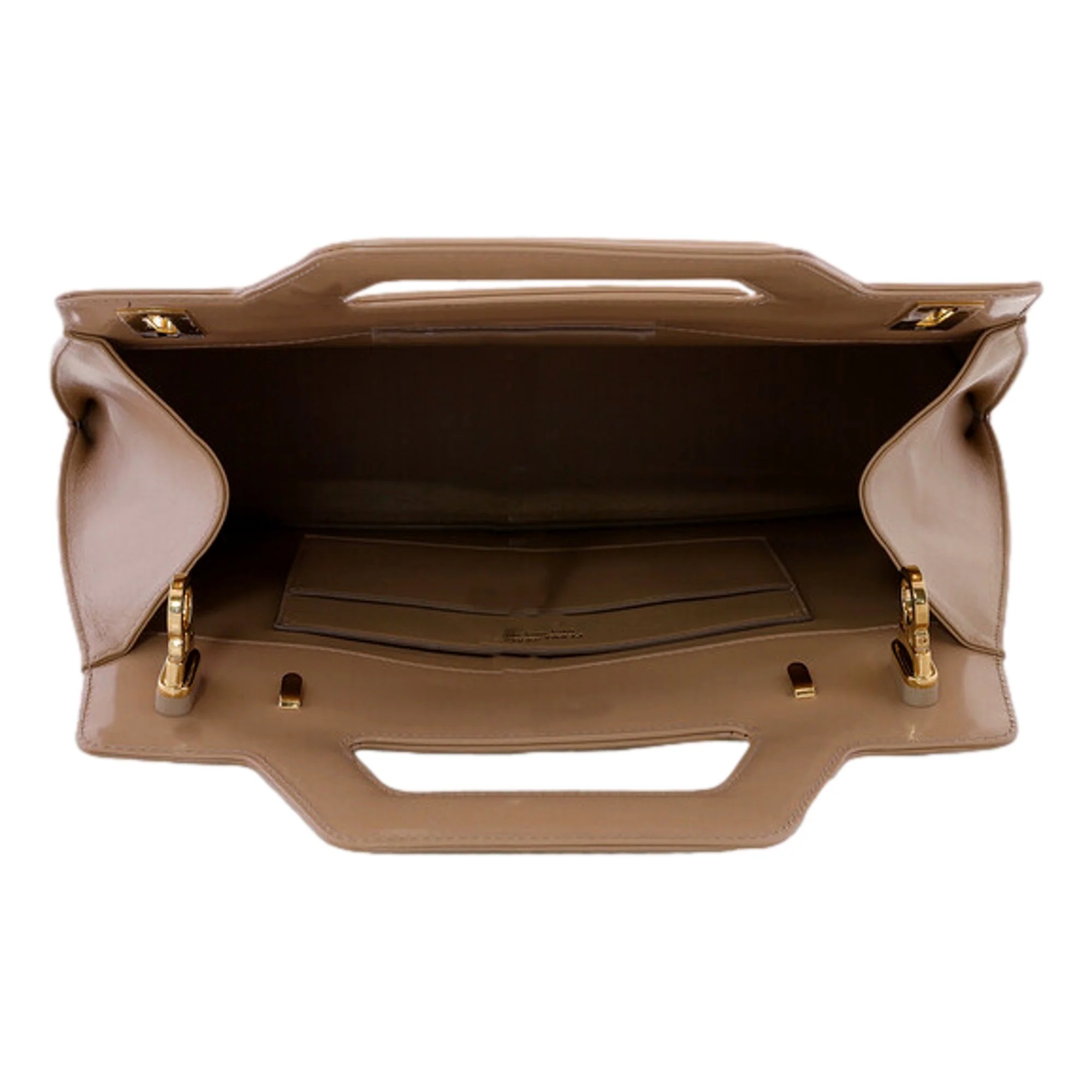 Indulge in the timeless elegance of the timeless “Wanda” top-handle handbag by Ferragamo, available in chic beige or sleek classic black patent leather. Don’t let your style lose its edge ... grab this bag before it disappears for good!
