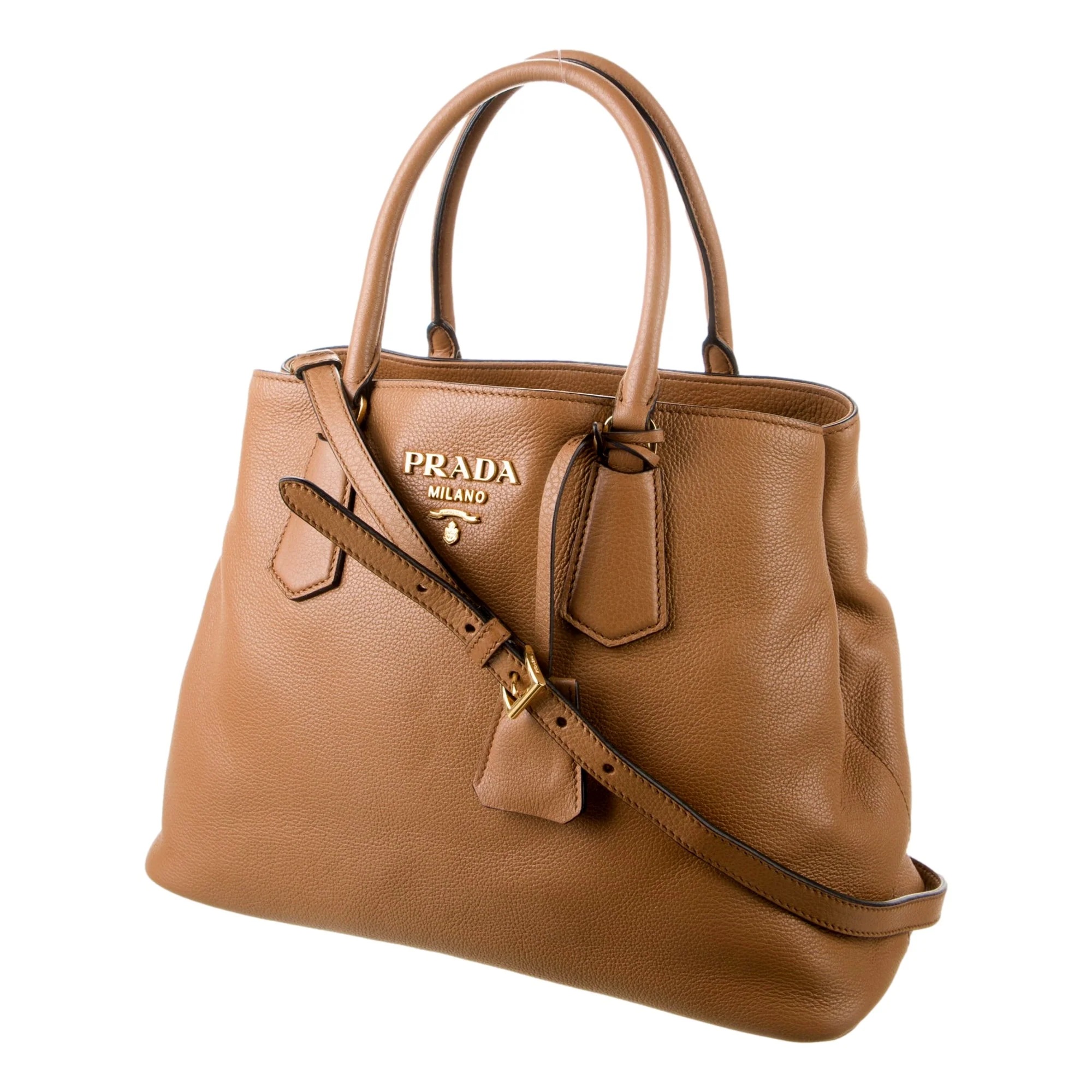 Take your style to the next level with the “Galleria” handbag, designed in sumptuous caramel brown vitello Phenix calf leather by the legendary Prada. Don’t let your wardrobe spiral into a fashion crisis ... snag this bag before it vanishes into the abyss of couture!