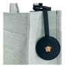 This bag is a veritable Mary Poppins' carpet bag of wonders! It boasts a spacious compartment that can swallow your cellphone, passport, keys and even the kitchen sink (okay, maybe not the sink). The canvas interior is jazzed up with leather trimmings, a sneaky inside zipper pocket for those top-secret items and a prominent logo motif. Fear not, the open top has got your back, ensuring no sneaky hands can pilfer your prized possessions. For those who can't decide if they're left or right-handed, it comes with two ambidextrous canvas handles. And for the fashionably fickle, there's a sturdy canvas shoulder strap that plays single duty as a shoulder bag. The gold-tone "Versace" logo on the front dazzles against the canvas backdrop, while the bottom grips and shiny metal details add just the right amount of pizzazz.